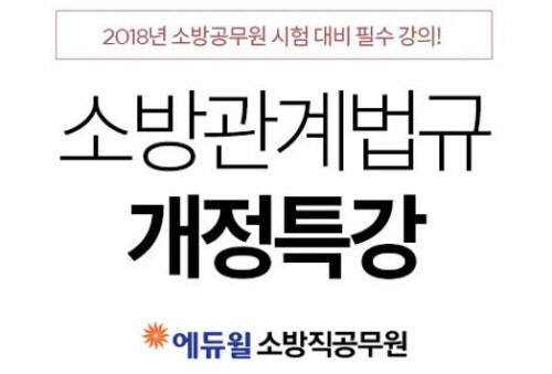 법 과목 같은 경우, 내용이 개정되는 등의 변경이 잦기 때문에 최신 개정법령 정리가 된 신규 강좌로 학습을 해야 하는 것이 중요하다. 이에 에듀윌은 소방공무원 전문 교수진이 시험에 필요한 정보만을 모은 최신 개정 특강을 제공하기로 했다.