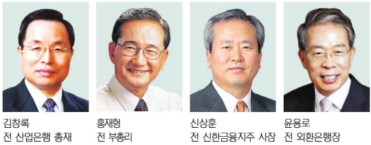 현재 차기 은행연합회장 후보로는 김창록 전 산업은행 총재(68), 홍재형 전 부총리(79), 신상훈 전 신한금융지주 사장(69), 윤용로 전 외환은행장(62) 등 전직 관료와 금융권 인사들이 거론되고 있다.