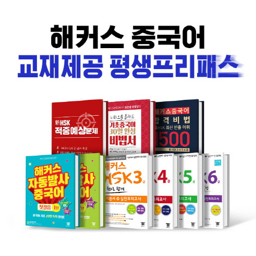 관계자는 "교재를 제공하는 것이 이번 프리패스의 장점"이라고 전했다. '교재제공 12개월/평생 프리패스' 수강생에게는 해커스 중국어 교재를 비롯하여 HSK 적중 예상문제, 비법서 등 다양한 자료가 제공된다. (PDF 포함)