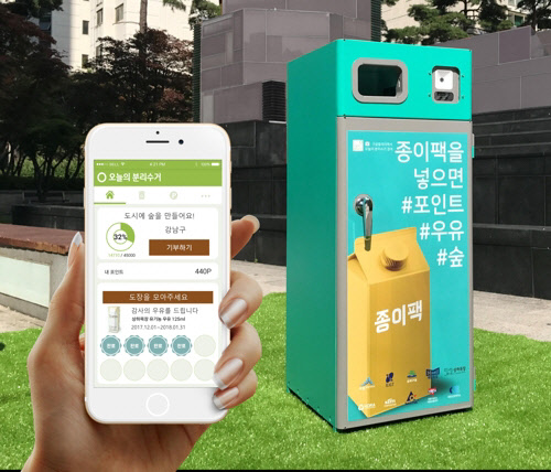 이 수거함은 사물인터넷 모듈을 장착, 종이팩 바코드를 태그하면 팩의 종류와 용량 등이 스마트폰 앱에 전송되는 것이 특징이다. 수거 가능한 종이팩은 우유팩, 음료팩, 두유팩, 소주팩 등이다.
