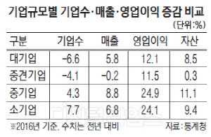 중기업과 소기업 숫자도 각각 4.3%와 7.7% 증가했고, 매출액도 8.8%와 6.8%를 기록했다.