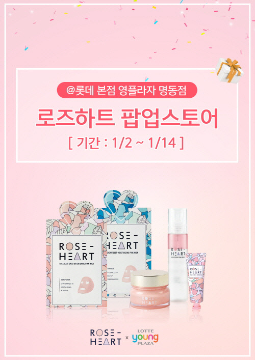 이번 롯데 본점 영플라자 명동점 팝업스토어에서는 롭스에서 이미 품절템으로 유명한 로즈하트 미스트를 비롯해 로즈하트 미백·수분 마스크팩 2종과 수분크림, 핸드크림까지 로즈하트 5종 전 제품 모두 만나볼 수 있다.