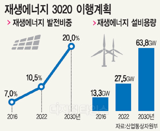 2030년까지 재생에너지 발전 비중을 20%까지 높이는 문재인 정부의 '재생에너지 3020 계획'은 미래 성장 동력 산업 육성 측면에서도 큰 변화를 예고하고 있다. 태양광발전 분야에서 대규모 투자가 감행되면서 세계 시장을 선도하는 기업이 속속 등장할 전망이다. 세계 선도 제품 개발과 가격 인하 등으로 태양광·풍력 연관 산업이 퀀텀 점프를 이루기 위해서는 국내 시장 기반이 탄탄해야 한다.