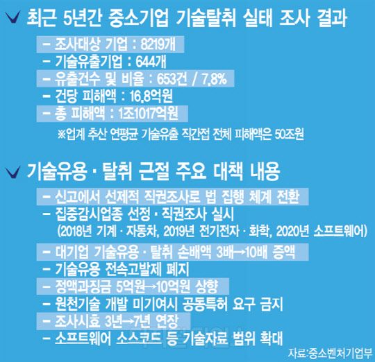 나아가 정부는 매년 기술 유출 집중 감시업종을 선정해 서면 실태조사를 진행하고 직권조사 대상을 선별할 계획입니다. 올해 기계·자동차 업계를 시작으로 2019년에는 전기전자·화학, 2020년에는 소프트웨어 등을 집중 감시할 예정입니다. 성경제 공정위 제조하도급개선과장은 "기계·자동차부터 소프트웨어와 의약품까지 기술탈취 우려가 큰 업종을 먼저 조사한 뒤 법 위반이 확인되면 엄정 조치할 것"이라고 말했습니다.