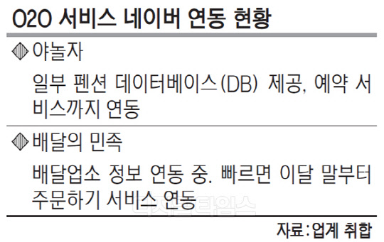 야놀자·배달의민족 등 업체들 네이버에DB 제공 서비스 연동 제휴 후 예약 대폭 증가 주목 "O2O플랫폼 경쟁력 하락 우려"