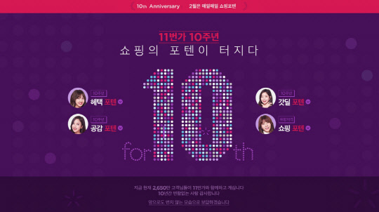 11번가가 론칭 10주년을 기념해 오는 28일까지 '쇼핑의 포텐(For 10th)이 터지다' 행사를 진행한다.