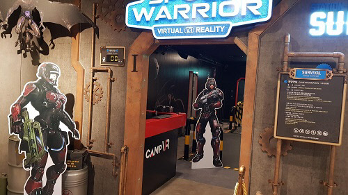 '스페이스 워리어'는 플레이어 위치 트레킹 기반 워킹 어트랙션 VR 서바이벌 게임으로, 최첨단 HMD기기와 백팩 PC, 전용 총기를 착용한 후 최대 4인이 동시 접속하여 협동 플레이를 할 수 있다.