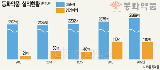 20일 한국거래소에 따르면 동화약품은 지난 2012년부터 2015년까지 매출액 2200억원대를 벗어나지 못하다가 손지훈 사장을 영입한 2016년 매출액 2375억원, 작년에는 9% 성장한 2589억원을 기록했다.
