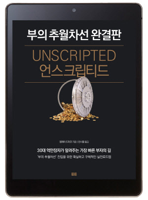 '언스크립티드 : 부의 추월차선 완결판'은 젊어서 부와 자유를 누리기 위해 당신이 지켜야 할 법칙과 강령들을 조목조목 짚어줘 현장에서 엠제이의 강연을 듣는 듯하다.