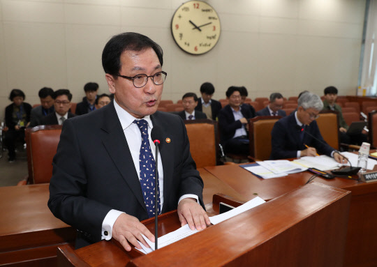 유영민 과학기술정보통신부 장관이 6일 오전 국회에서 열린 4차 산업혁명 특별위원회 전체회의에서 5G 서비스 상용화, 개인정보 활용 관련 법제화 등에 대한 업무보고를 하고 있다.