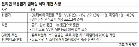 11번가, VIP이상 전용상품 준비 티몬, 골드·실버→'뉴' 등급 통합 이베이, 유료회원에 적립금 확대