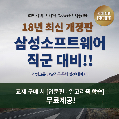 와우패스JOB은 삼성 소프트웨어 역량 테스트 강의를 2018년 상반기 채용대비 전면 업데이트했으며, 교재 또한 2018 최신 개정판으로 시험 대비 필수 유형별 알고리즘 18선 수록, 20개 필수 프로그램 풀이 및 코딩을 수록하여 삼성 공채 준비생들이 완벽하게 소프트웨어 역량테스트를 준비할 수 있도록 했다.