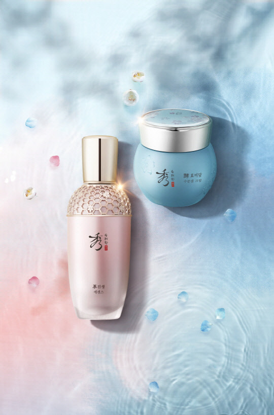 '효비담 수분샘 크림 대용량 물꽃 에디션'은 용기 뚜껑에 다양한 색상의 물에 떨어진 매화꽃을 수 놓은 듯이 디자인했다. 이 크림은 발효된 수경인삼과 히알루론산으로 구성된 발효수경인삼히알루론산을 담았으며, 오랫동안 수분을 머금은 듯한 피부로 가꿔준다. 가격은 효비담 수분샘 크림 대용량 물꽃 에디션 6만원, 진생 에센스 대용량 핑크 에디션 9만5000원.