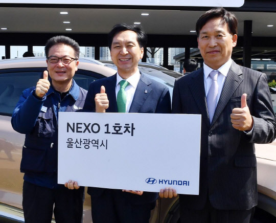 현대차 수소차 `넥쏘`, 울산·광주 1호차 동시전달