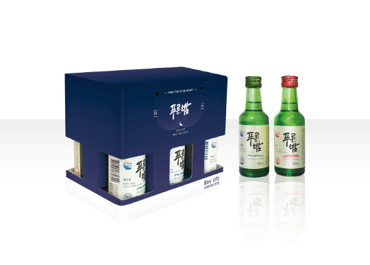 이 제품은 80㎖ 미니어쳐 6개 들이로 16.9도의 '짧은밤' 3개, 20.1도의 '긴밤' 3개로 구성됐다. 가격은 5180원. 짙은 파란색으로 디자인해 보기만 해도 '푸른밤' 이미지를 직관적으로 떠올릴 수 있도록 했다. 제품은 제주도 내 이마트 3개점(제주점·신제주점·서귀포점)에서 살 수 있다. 제주소주는 앞으로 지역마트, 전국 신세계 유통채널에도 이를 선보일 예정이다.