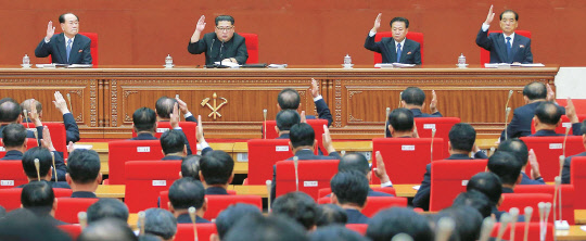 북한 김정은 조선노동당 위원장이 지난 20일 평양에서 열린 당 중앙위원회 제7기 제3차 전원회의를 주재하고 있다.