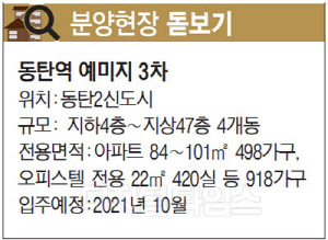 동탄역 예미지 3차 아파트의 3.3㎡당 평균 분양가는 1388만원이며 주택형별로 84㎡ 4억3430만∼4억7880만원, 87㎡ 4억7270만∼4억8690만원, 101㎡ 5억810만∼5억5680만원이다. 지난해 말 분양된 동탄역 롯데캐슬 아파트 전용 84㎡ 분양가인 4억3800만∼4억8200만원과 비슷하다. 오피스텔은 전용 22㎡ 분양가가 1억4770만∼1억5850만원이다. 인근 미분양 오피스텔보다 1000만∼2000만원 저렴하다. 입주는 2021년 10월 예정이다.