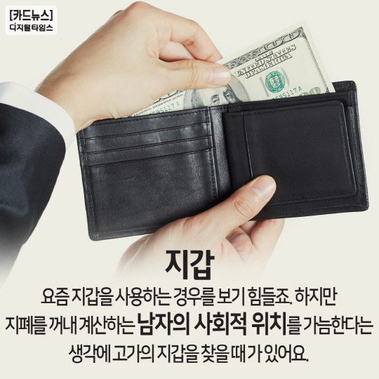 하지만 지폐를 꺼내 계산하는 남자의 사회적 위치를 가늠한다는 생각에 고가의 지갑을 찾을 때 가 있어요.
