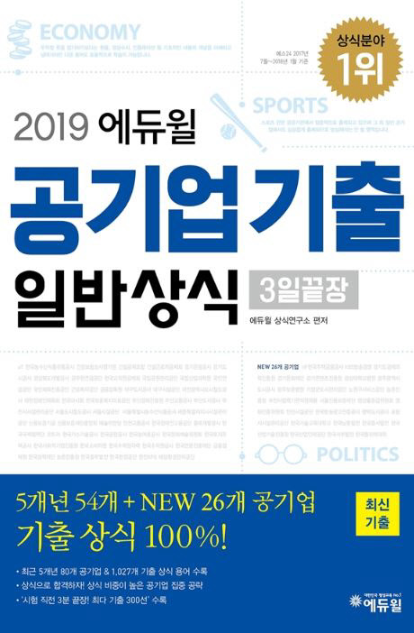 이에 종합교육기업 ㈜에듀윌이 출간한 '2019 에듀윌 공기업 기출 일반상식 3일 끝장' 교재가 온라인 서점 예스24 취업/면접/상식 부문 4월 4주차 베스트셀러 1위를 차지했다.