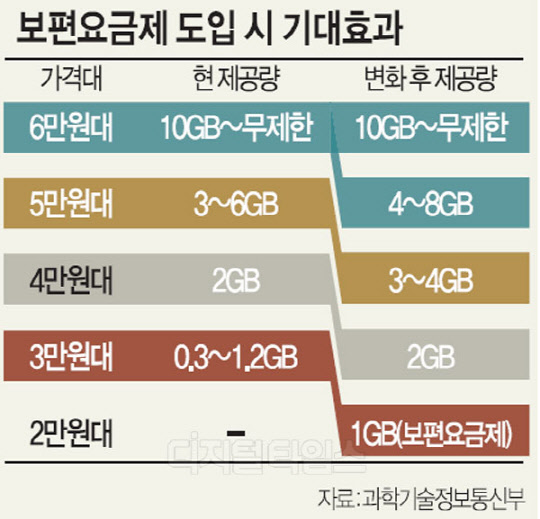 보편요금제가 기본료 폐지의 대안이 될 수 있다는 점도 강조했다. 전성배 과기정통부 통신정책국장은 "기본료 폐지는 이통사에 7조원 정도 부담이 돼 대안으로 선택약정, 요금감면, 보편요금제 등을 제안했다"며 "가장 중요한 것은 이 보편요금제"라고 강조했다.