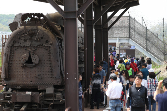 남북정상회담 이후 분단과 통일에 대한 관심이 높아진 가운데 29일 우리나라 최북단 경기도 파주 임진각이 관광객들로 붐비고 있다.