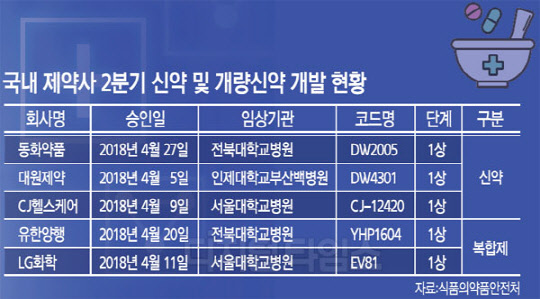 8일 식품의약품안전처에 따르면 올해 2분기에 국내 제약사들이 잇따라 신약과 복합 개량신약 등 임상시험을 허가 받으면서 미래 먹거리를 마련하고 있다.