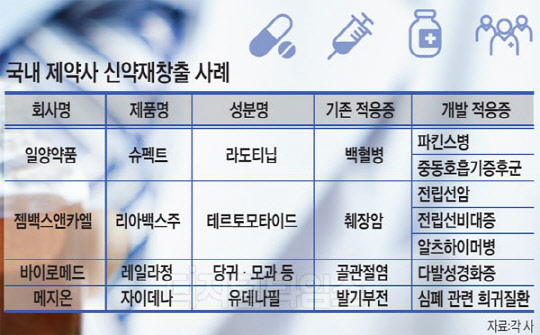 제약사, 기존 제품 적응증 연구 신약개발 비용 대비 35% 수준 새 효능 찾아내 시장 창출 기대