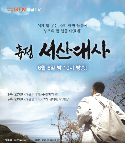 한편, BTN불교TV가 기획 및 제작한 호국 보훈의 달 특집 UHD 다큐멘터리 휴정 서산대사는 각 지역 케이블과 스카이라이프, IPTV(KT OLLEH, SK BTV, LG U+), 해당 방송사 인터넷과 모바일을 통해 만날 수 있다.