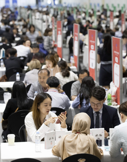 산업통상자원부와 코트라(KOTRA)는 4일부터 이틀간 서울 삼성동 코엑스에서 관계부처, 유관기관과 함께 '전자상거래와 디지털 마케팅'을 주제로 '2018 대한민국 소비재 수출대전'을 개최한다. 이날 오전 수출대전에서 국내 중소기업과 해외 거래처 관계자들이 수출 상담을 하고 있다.