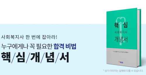 해당 브랜드의 사회복지사 핵심 개념서는 바로 이러한 수험생들의 니즈를 반영한 합격 필독서로 총 8과목(인간행동과 사회환경, 사회복지 조사론, 사회복지 실천론, 사회복지 실천기술론, 지역사회 복지론, 사회복지 정책론, 사회복지 행정론, 사회복지 법제론)의 핵심만 추려 한 권으로 전 과목을 빠르게 완성할 수 있는 것이 특징이다.