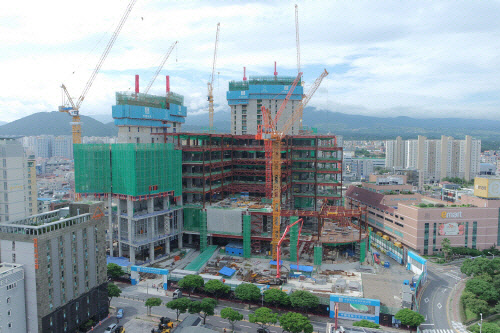 시공사인 중국건축(CSCEC)에 따르면 지난 2016년5월 착공한 이후 공사가 원활하게 진행되고 있다. 38층 높이의 호텔 건물 2개 동은 빌딩의 코어부가 17층까지 올라갔다. 이와 함께 제주 최고 높이(62m)의 인피니티풀과 제주 최대 쇼핑몰 등이 들어서는 포디엄 부문은 8층까지 전체 외형을 드러냈다. 중국건축 관계자는 "600여명이 매일 공사에 투입돼 공정을 계획대로 진행하고 있어 오는 11월이면 38층까지 코어부가 올라갈 것"이라고 밝혔다.