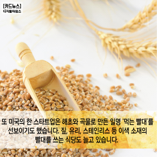 4.또 미국의 한 스타트업은 해초와 곡물로 만든 일명 '먹는 빨대'를 선보이기도 했습니다. 짚, 유리, 스테인리스 등 이색 소재의 빨대를 쓰는 식당도 늘고 있습니다.