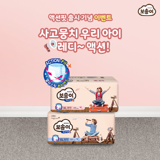 깨끗한나라는 '보솜이액션핏' 출시를 기념해 '나에게 맞는 액션핏기능을 골라주세요'와 '액션핏 영상 공유이벤트'를 진행하고 있다.