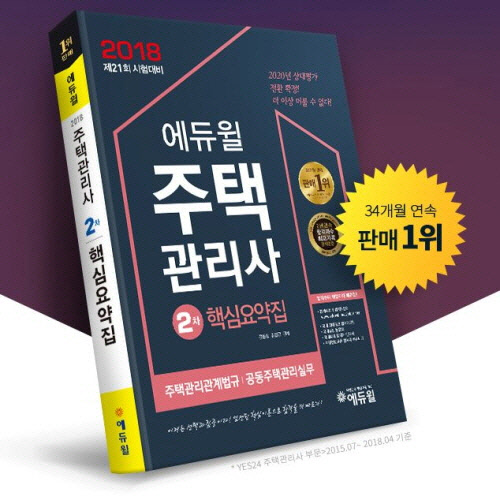 이와 관련, 종합교육기업 ㈜에듀윌이 출간한 '2018 에듀윌 주택관리사 2차 핵심요약집'이 인기 온라인서점 예스24 주택관리사 부문 7월 3주차 베스트셀러 1위에 올랐다.