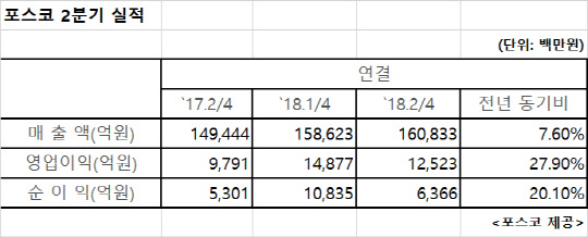 포스코는 2분기 연결 기준으로 매출액 16조833억원, 영업이익 1조2523억원의 실적을 기록했다고 23일 공시했다.