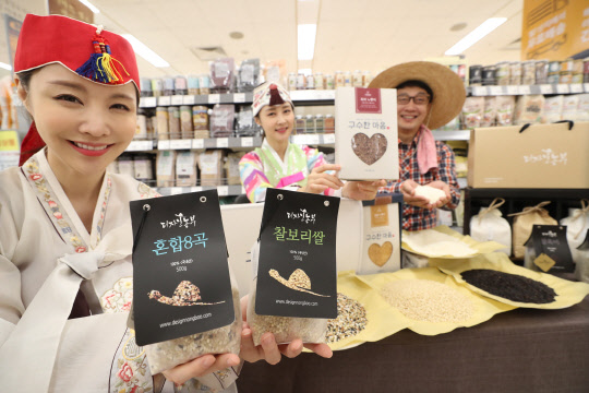28일 오전 서울 용산구 이마트 용산점에서 모델들이 청년 농부가 만든 '디자인농부 잡곡세트'를 선보이고 있다. 이마트는 농업분야의 미래 경쟁력 확보를 위해 청년 농부들에게 상품 기획 및 판로를 지원할 계획이며 판매는 다음달 13일부터 시작한다.