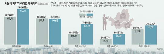 정부의 잇단 규제에도 올해 서울 집값이 고공행진을 이어간 가운데 올해 집값이 가장 많이 오른 곳은 투기지역으로 지정된 11곳의 입주 11∼15년차 아파트로 나타났다.
