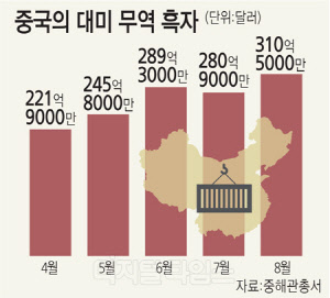 중국의 대미 무역흑자가 최대 기록을 경신하는 증가세를 이어가자 시장은 미·중 간 무역전쟁 전개 양상에 촉각을 곤두세우고 있다. 중국의 대미 무역흑자가 사상 최대치를 경신한 것과 달리 미국은 무역적자가 계속 확대되고 있기 때문이다.