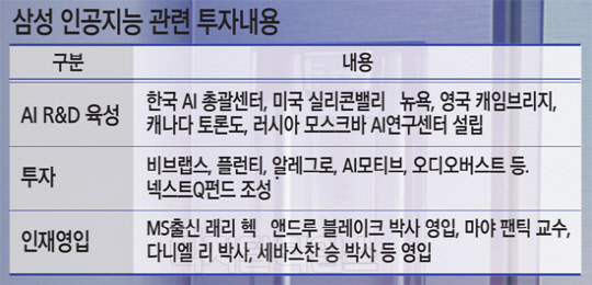 재계 관계자는 "이재용 부회장이 AI, 자동차 전장(전자장비), 바이오 등 신성장동력 사업 가운데 일단 AI에 집중하고 있는 듯하다"면서 "내부 기술 개발과 동시에 차별화된 기술을 보유한 업체와의 인수 및 협력을 통해 가속페달을 밟을 것으로 보인다"고 말했다.