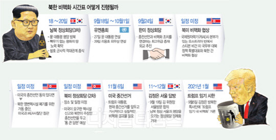 문재인 대통령과 김정은 북한 국무위원장이 서명한 '9월 평양공동선언'으로 남북미 3개국이 비핵화를 구체적으로 논의할 수 있는 토대가 마련됐다는 분석이 나오고 있다.