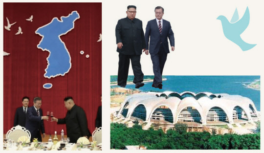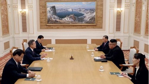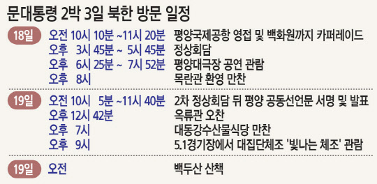 문 대통령과 김 위원장은 2박 3일의 일정 대부분을 함께 했다. 2번의 정상회담, 3번의 식사, 2번의 공연관람, 20일 백두산 동행까지 9차례의 일정을 함께 소화했다.