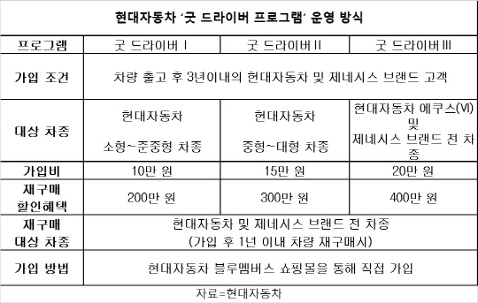 굿 드라이버 프로그램은 차량 출고 후 3년 이내에 가입할 수 있으며 이용을 원할 경우 현대차 블루멤버스 쇼핑몰에서 직접 가입하면 된다.김양혁기자 mj@dt.co.kr