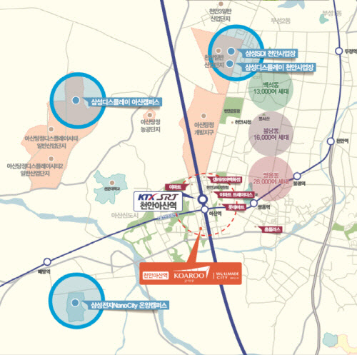 특히 소형 오피스텔의 미래가치과 직결되는 배후수요가 풍부하다. 단지 인근으로 삼성디스플레이, 삼성SDI, 삼성 Nano city를 비롯 현대자동차 아산공장도 위치하고 있어 약 7만여명의 산업단지 배후수요를 두고 있다.