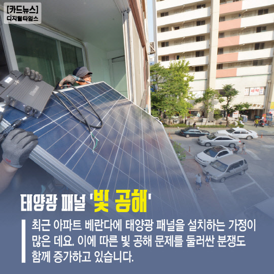 최근 아파트 베란다에 태양광 패널을 설치하는 가정이 많은 데요. 이에 따른 빛 공해 문제를 둘러싼 분쟁도 함께 증가하고 있습니다.