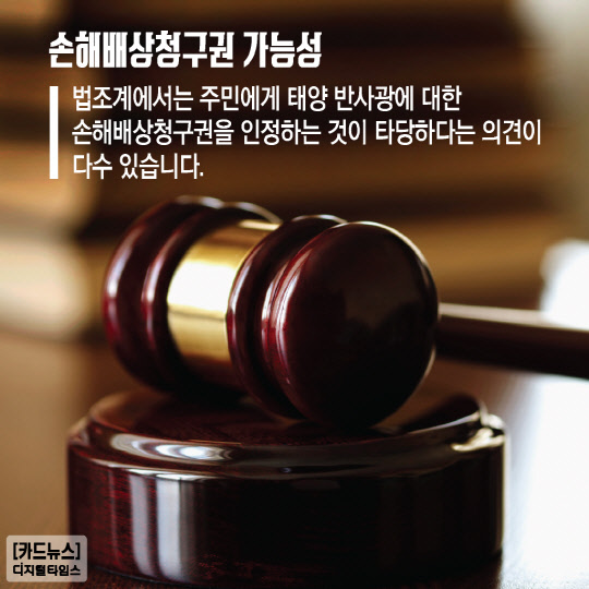 법조계에서는 주민에게 태양 반사광에 대한 손해배상청구권을 인정하는 것이 타당하다는 의견이 다수 있습니다.