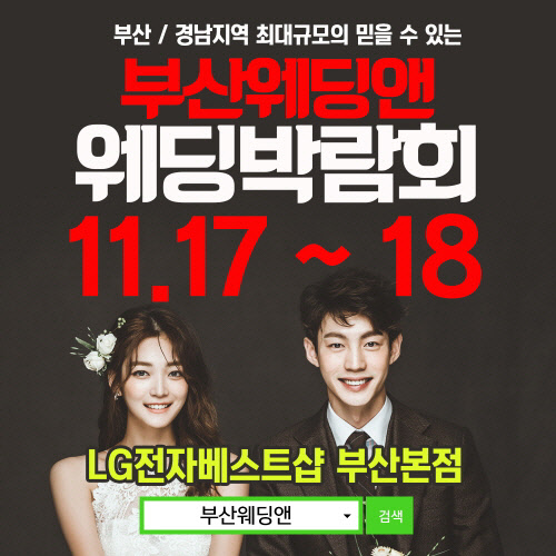 다가오는 주말, 부산ㆍ경남지역 예비 부부라면 방문해 볼만한 장소가 있다. 2018년 11월 17일부터 18일까지 2일간의 일정으로 LG전자베스트샵 부산본점에서 진행되는 웨딩앤 부산웨딩박람회가 그 주인공. 연간 가장 많은 예비부부의 웨딩을 진행하며 7년 연속 최다 웨딩 진행 이력을 자랑하는 웨딩앤에서 이번에는 부산, 경남지역의 예비부부를 찾아간다. 인근인 양산, 창원, 밀양, 울산시에 거주하는 예비부부라면 이번 박람회를 주목해보자.