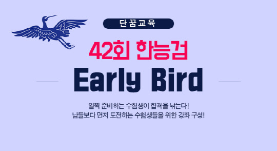 한능검 합격자들을 대상으로 한 설문에 따르면, 시험대비 평균 학습 수강일은58일로 나타났다.이에 설민석 스타강사가 대표로 있는 단꿈교육, 단꿈자격증에서는 '42회 한능검Early Bird' 프로모션을 오는 12월 2일까지 진행한다.