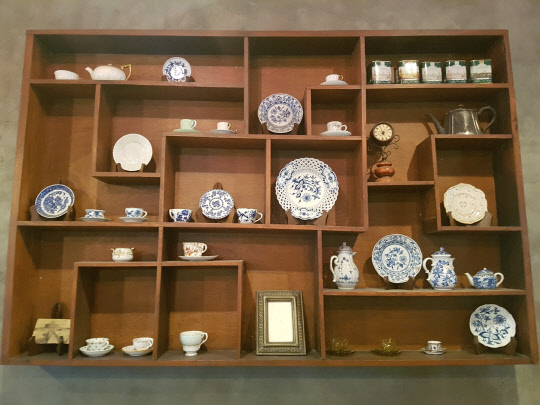 손때가 묻어 낡아진 종이 메뉴판 가장 첫번째 줄에 적혀있는 비엔나커피,천장의길게 늘어뜨린 반짝이는 샹들리에,벽면을 장식하고 있는 오래된 스푼과 앤티크한 커피잔은 화려했던 그때의모습을떠올리게 하는 추억의 소품들이다.