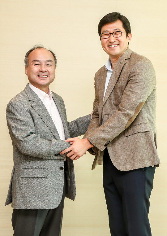 쿠팡이 또 한 번 초대형 투자를 이끌어냈다. 지난 2015년 10억 달러(약 1조1314억원) 투자를 단행한 손정의(孫正義·손 마사요시·사진 왼쪽) 일본 소프트뱅크 회장이 이번에는 20억 달러(약 2조2500억원)를 더 투자하기로 한 것이다. 한국 인터넷 기업 사상 최대 투자 금액이다.