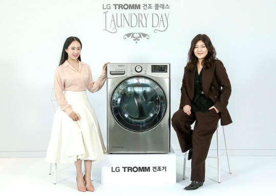 배우 김민정, 국내 톱스타일리스트 한혜연이 23일 오전 여의도 세상의 모든 아침에서 열린 'LG 트롬 건조클래스-런드리 데이'를 참여해 화제다.